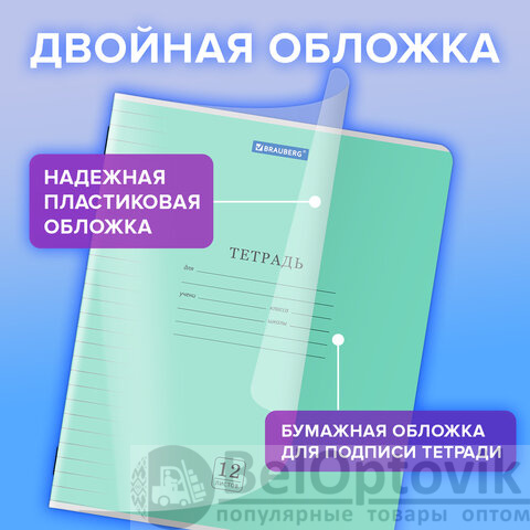 Тетрадь с двойной обложкой: внешняя выполнена из высококачественного износостойкого прозрачного пластика, внутренняя — из качественной мелованной бумаги 110 г/м2. Преимущество таких тетрадей заключается в том, что для сохранения внешнего вида не нужно покупать дополнительную обложку. Внутренний блок плотностью 60 г/м2 из офсетной бумаги содержит 12 листов в линию с полями. Скрепка надежно скрепляет листы между собой. Справочная информация на задней стороне обложки содержит меры длины, объема, массы, площади и таблицу умножения.