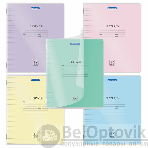 Тетрадь пластиковая обложка (прозрачная) 12 листов, линия, BRAUBERG "Smart Cover", АССОРТИ (микс в спайке), 405023