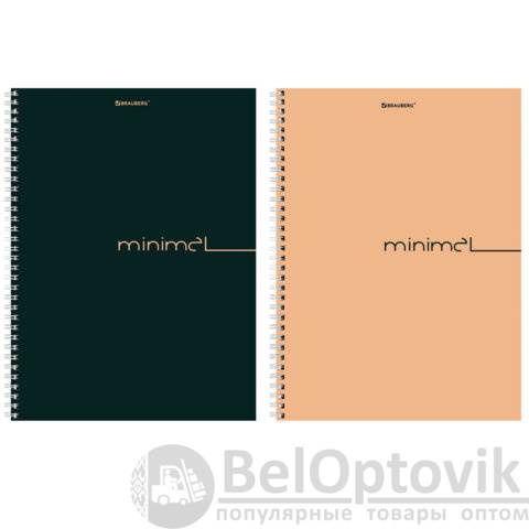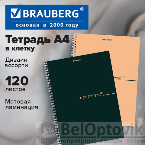 Тетрадь А4, 120 л., BRAUBERG, гребень, клетка, матовая ламинация, Минимал_Цвет, 405642