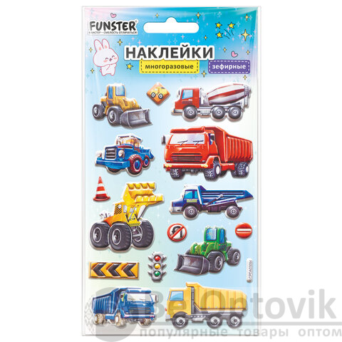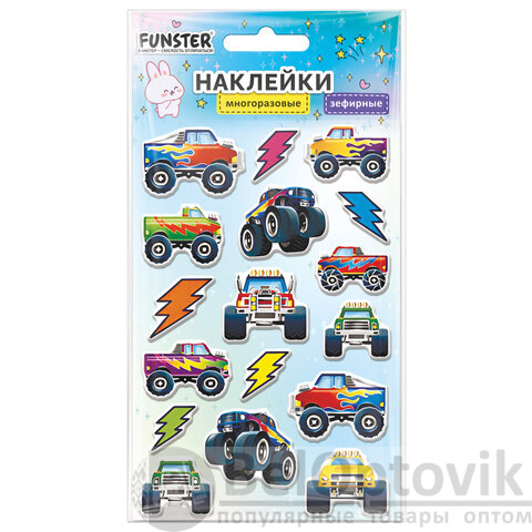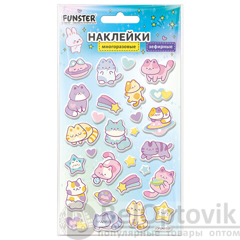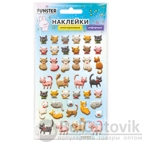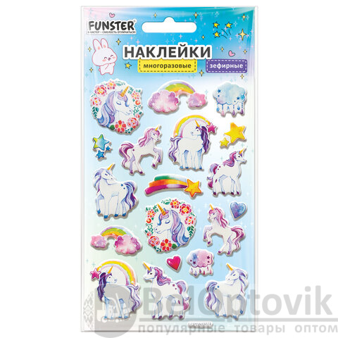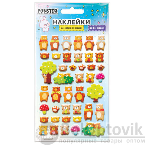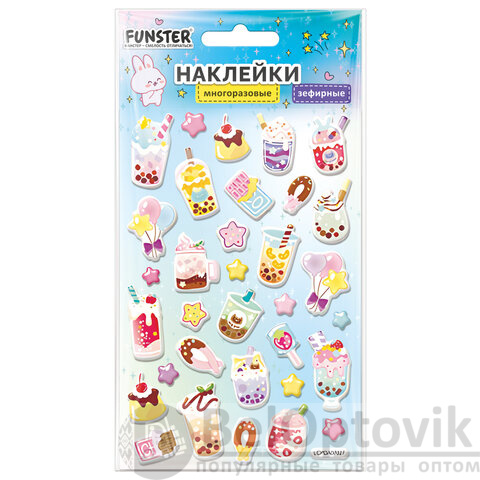 Наклейки объемные зефирные 15х10 см, ассорти 12 видов, FUNSTER (ФАНСТЕР), 666675