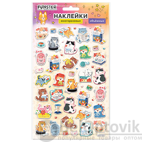 Декоративные наклейки FUNSTER – идеальный выбор для творчества! Эти очаровательные наклейки в ярких дизайнах ассорти поднимут настроение и добавят красок в повседневность.