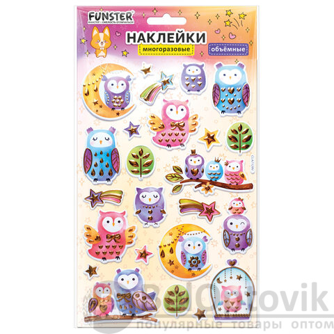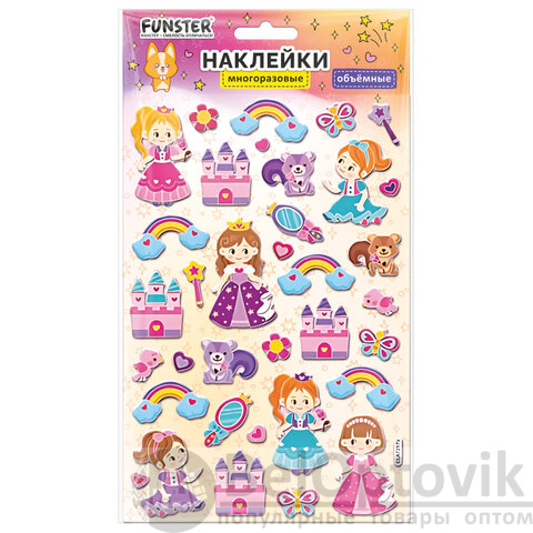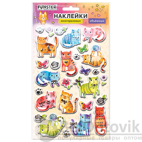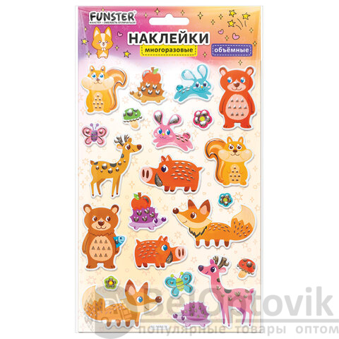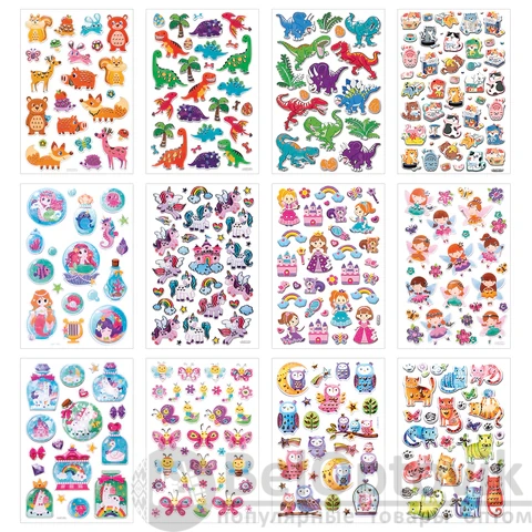 В наборе от 17 до 39 объемных наклеек с очаровательными дизайнами ассорти – животные и сказочные существа, которые никого не оставят равнодушными.