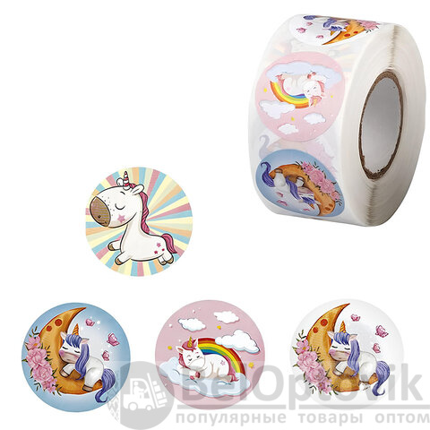 Наклейки декоративные в рулоне "Единороги", диаметр 25 мм, 500 шт, CENTRUM, 81249