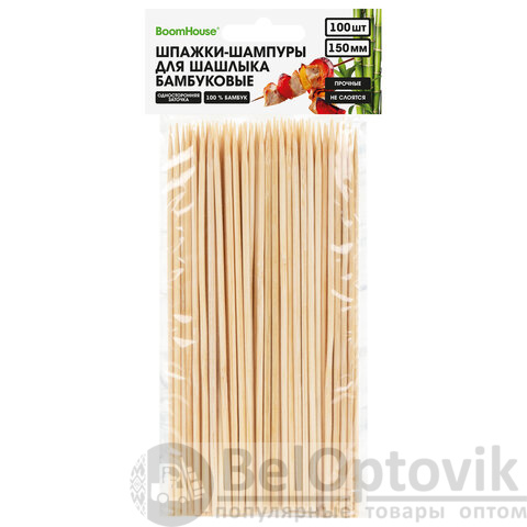 Шпажки-шампуры для шашлыка бамбуковые 150 мм, 100 шт., BOOMHOUSE (БУМХАУС), 701957