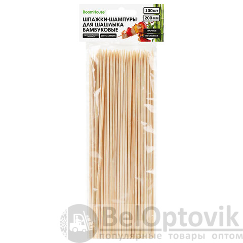 Шпажки-шампуры для шашлыка бамбуковые 200 мм, 100 шт., BOOMHOUSE (БУМХАУС), 701958