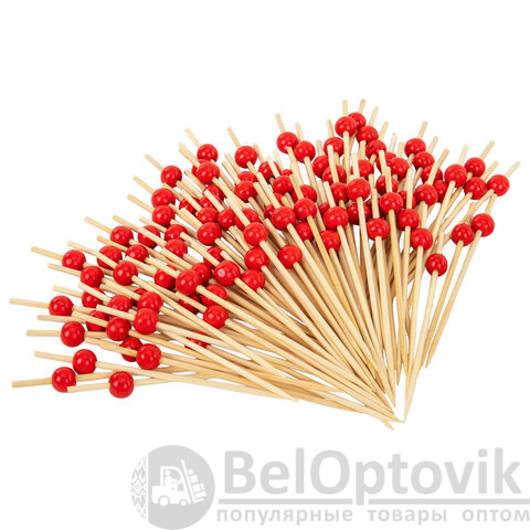 Шпажки-пики для канапе бамбуковые форма "Жемчужина красная" 12 см, 100 шт., BOOMHOUSE (БУМХАУС), 701968