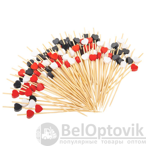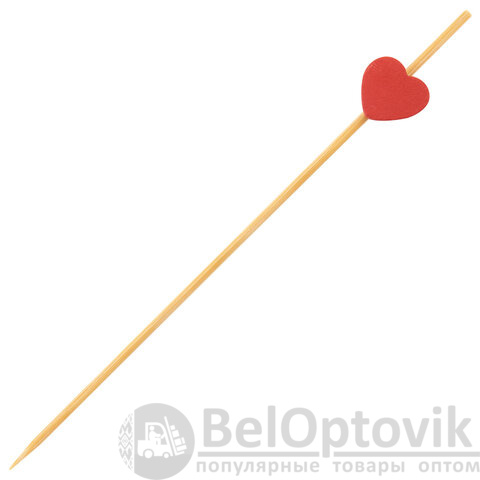 Шпажки-пики изготовлены из бамбука. Безопасны при использовании, так как не выделяют вредных веществ и не меняют вкус продуктов. Изделия имеют наконечник в форме сердца.