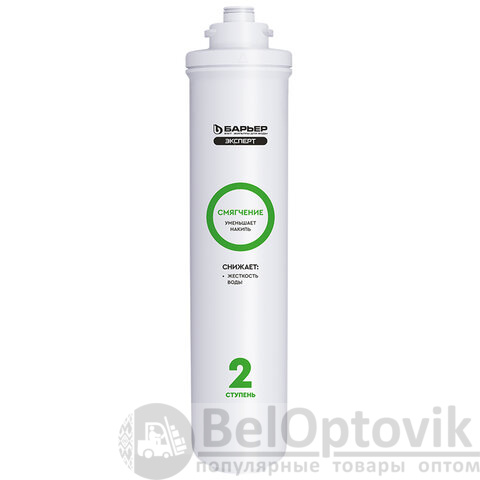 Картридж БАРЬЕР ЭКСПЕРТ Смягчение используется в качестве второй ступени фильтрах БАРЬЕР "ЭКСПЕРТ Жесткость", БАРЬЕР "ЭКСПЕРТ Комплекс" и БАРЬЕР "ЭКСПЕРТ Смягчение БИО".