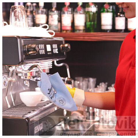Салфетка из микроволокна со специальным мягким ПУР покрытием для профессиональной уборки любых поверхностей. За счет специального ПУР покрытия и микроволокна салфетка эффективно собирает загрязнения и влагу всего за одно движение.