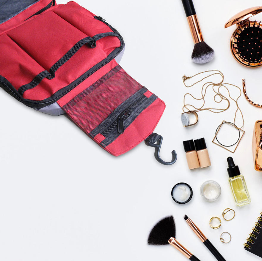 Собрались в путешествие и теперь думаете, куда же сложить все косметические принадлежности? Косметичка-органайзер для путешествий на вешалке поможет компактно разместить всё необходимое!