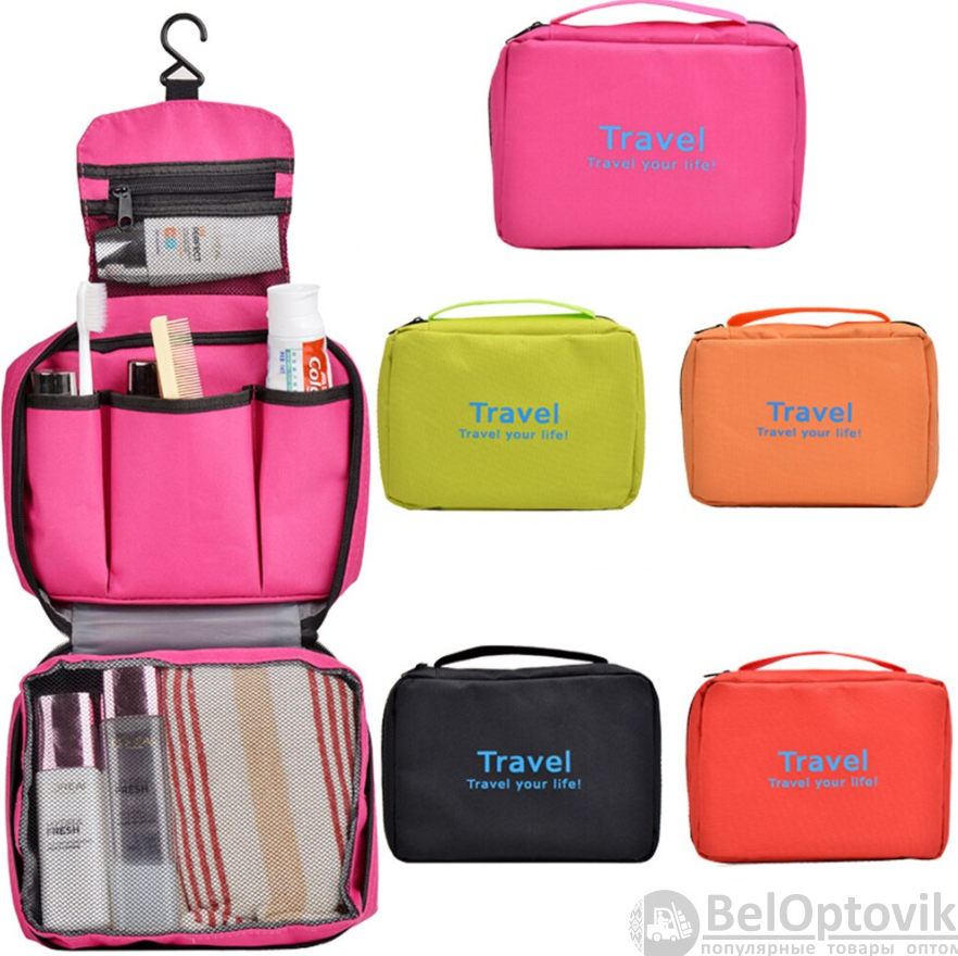 Косметичка-несессер дорожная TRAVEL BAG незаменимая вещь в поездках и путешествиях. Несессер позволяет собрать в одном месте всё необходимое от зубной щётки, бритвенных принадлежностей до предметов личной гигиены. Удобная ручка для переноски и практичный крючок для подвешивания во время процедур позволят разместить косметичку практически в любом месте в поезде, самолёте или ванной комнате.