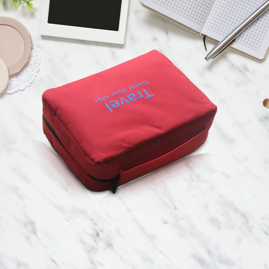 В верхней органайзере находится 4 кармана, а также карман-сетка, которые позволяют удобно расположить все необходимые принадлежности. Имеется крючок для подвешивания, а также удобную тканевую ручку для переноски. В собранном виде очень компактен. Застёгивается на замок. Идеально подойдёт для путешествий и командировок!
