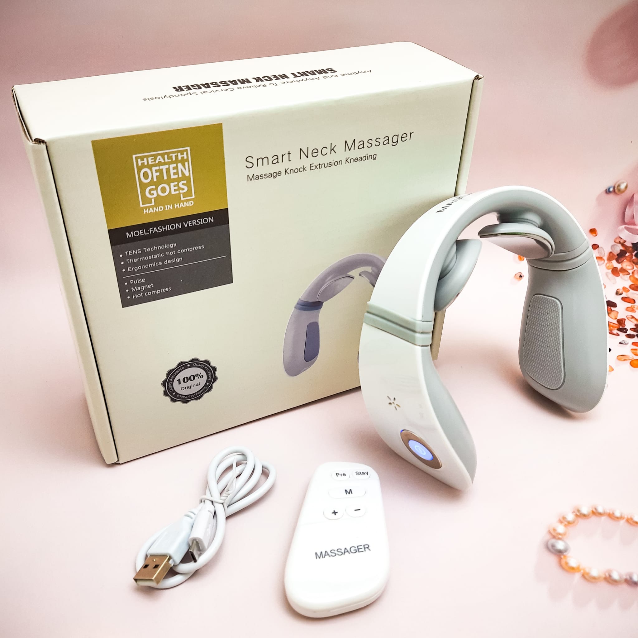 - Инновационный массажер для шеи помогает уменьшить напряжение и боль в шее с помощью электрической стимуляции и тепловой терапии.