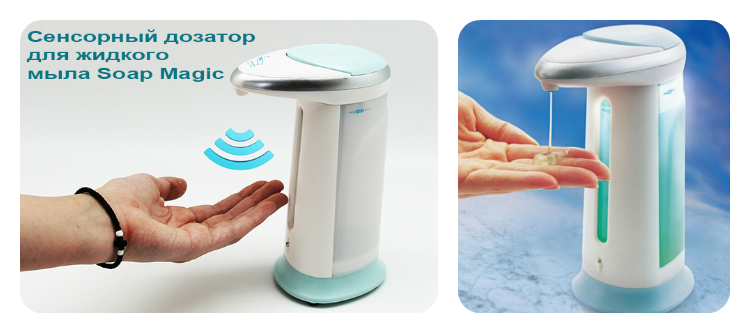 Дозатор жидкого мыла Soap Magic благодаря сенсорному дозатору больше не придётся касаться мыльницы грязными руками. Можно использовать на кухне и в ванной комнате, расход моющих средств сократится на порядок. Это отличное решение для общественных мест: офиса, школы, больницы, кафе, гостиницы, ресторана.