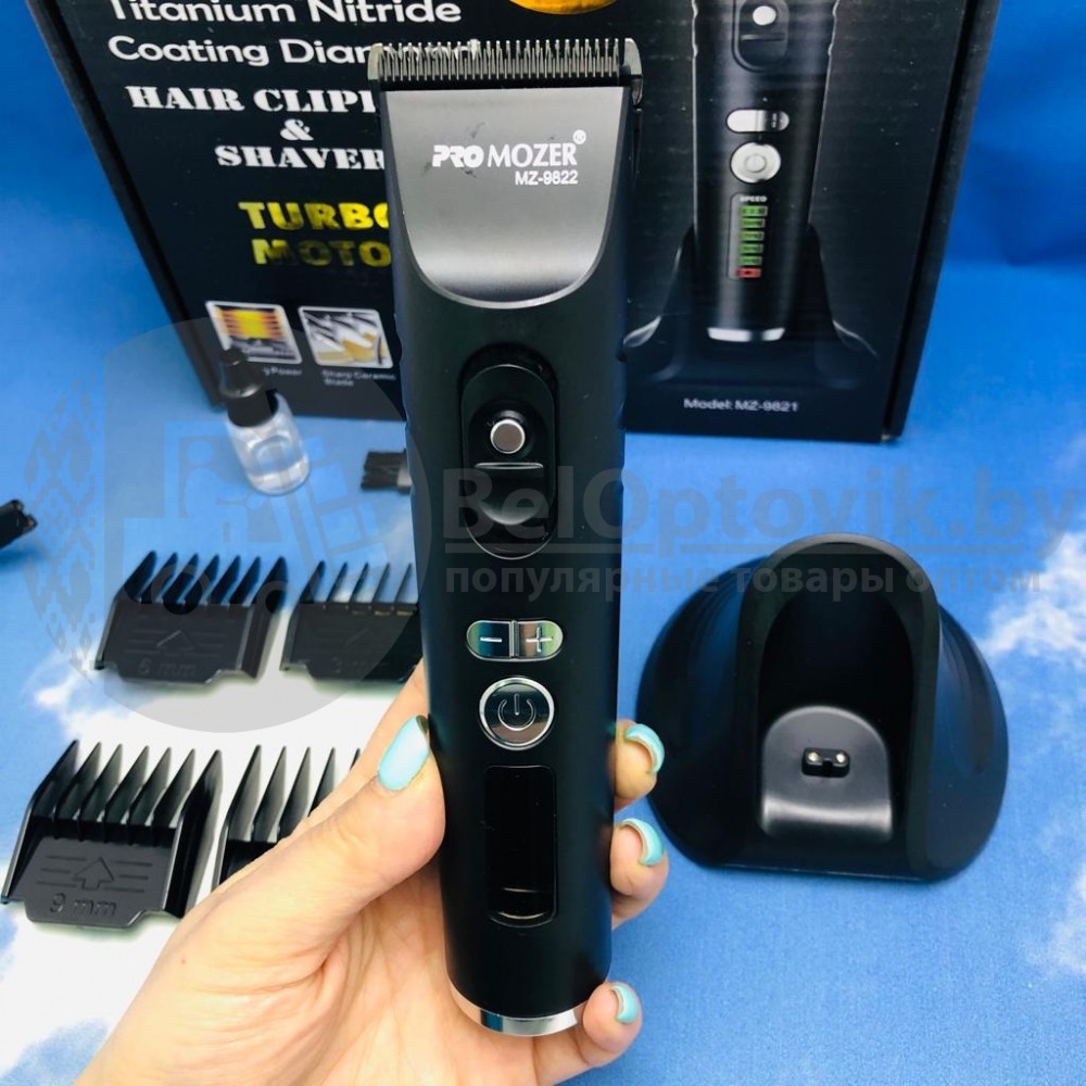 Почему купить профессиональный триммер для стрижки волос, бороды, усов Hair Clipper PRO MOZER MZ-9821 (LED-индикатор зарядки, четыре насадки, 3 скорости работы) оптом выгодно у нас