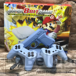 Игровая приставка SUPER 8 bit GAME модель TY-368 old или TY-168 с пистолетом и двумя игровыми джойстиками это поддержка игр разных жанров + игр для моделей со световым пистолетом, неразъёмный шнур в двойной изоляции, совместимость со стандартными картриджами, и всё это в новой матовой упаковке с ярким оформлением и лакированными элементами.