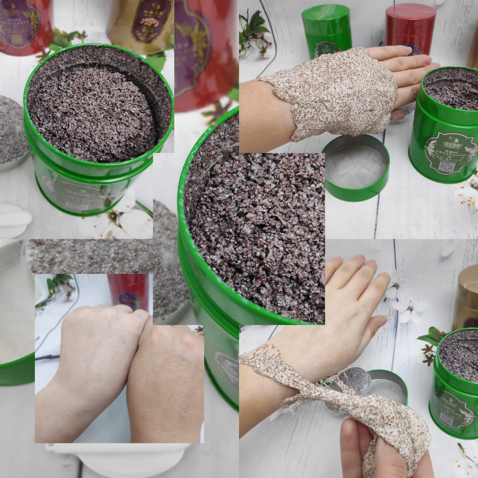 При взаимодействии с жидкостью образует пластичную массу. Семена морских водорослей оказывают регенерирующее воздействие на кожу.