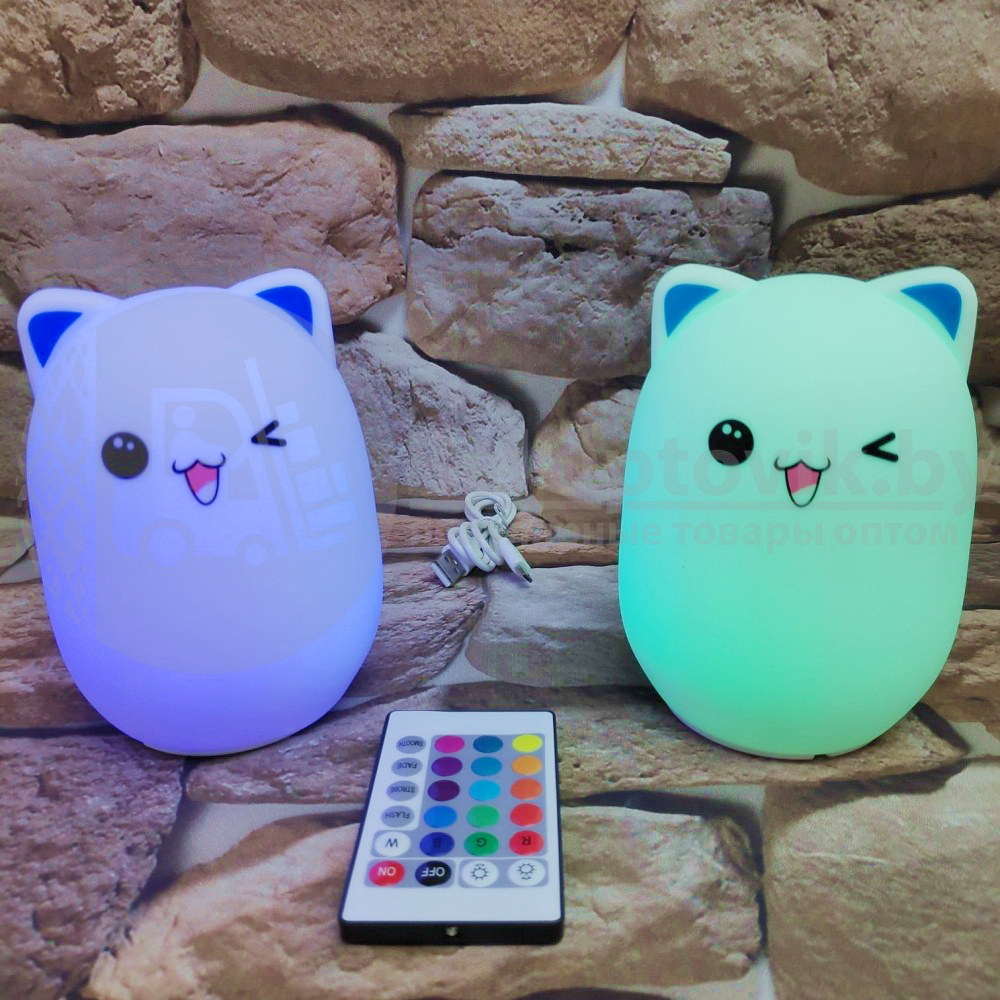 Cветильник – ночник из мягкого силикона ALILU (большой) с Пультом управления Котик с синими ушками