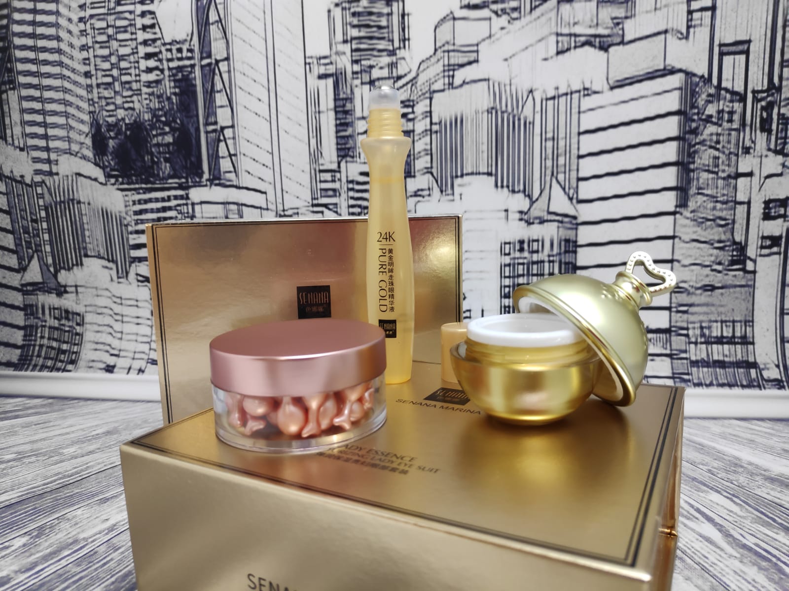 Подарочный уходовый набор для области вокруг глаз Senana Marina Lady Essence Moisturizing Lady Eye Suit (Леди Эссенс): сыворотка-роллер, сыворотка в капсулах, крем для области вокруг глаз