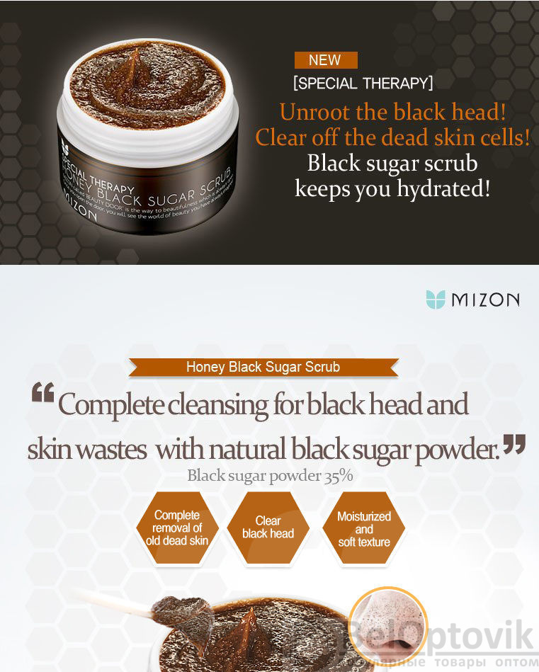 Почему купить Медовый скраб для лица с натуральным черным сахаром Honey Black Sugar Scrub Mizon, 80 ml оптом выгодно у нас: