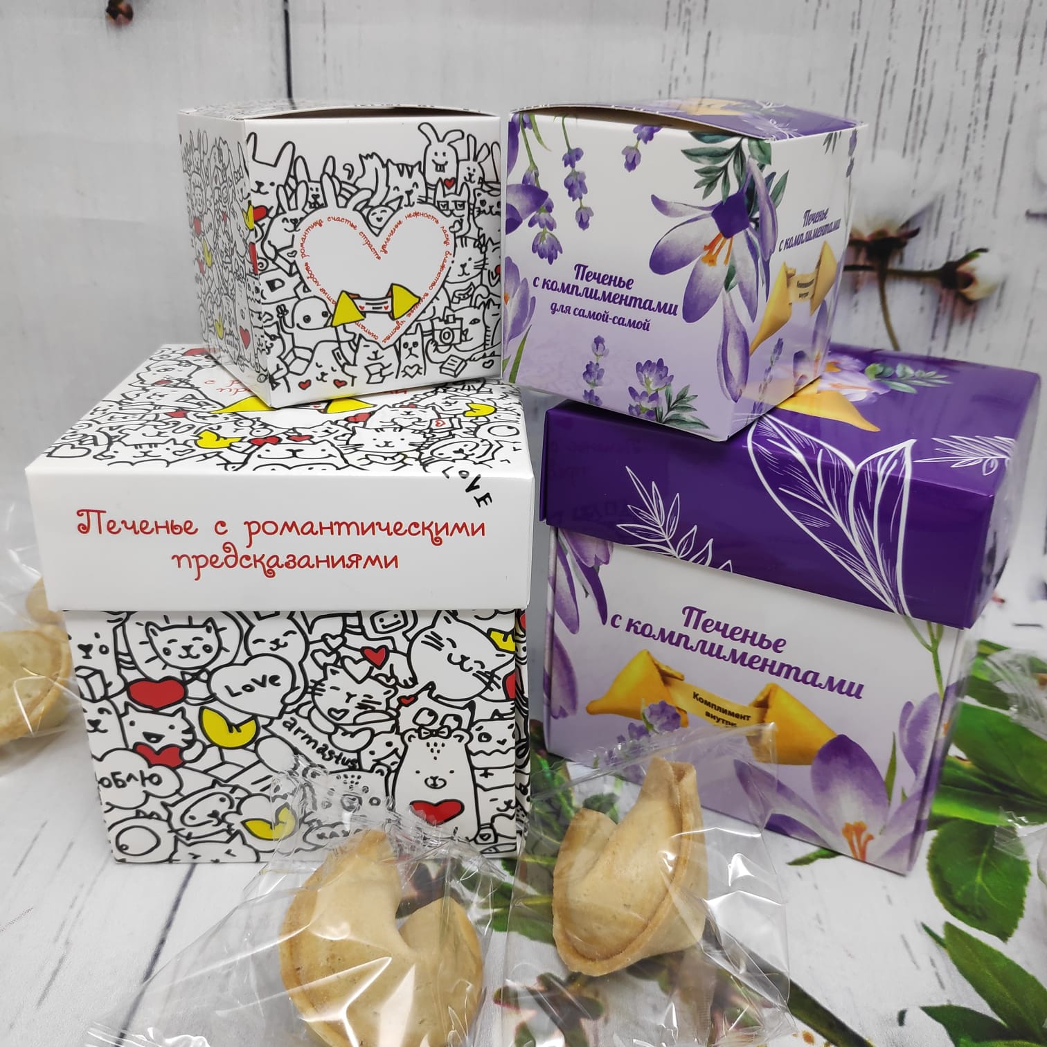 Волшебное печенье с предсказаниями С романтическими предсказаниями (2 печеньки в коробочке)