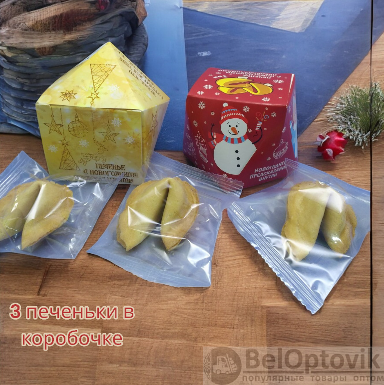 Почему купить Волшебное печенье с новогодними предсказаниями (3 печеньки в коробочке) оптом выгодно у нас: