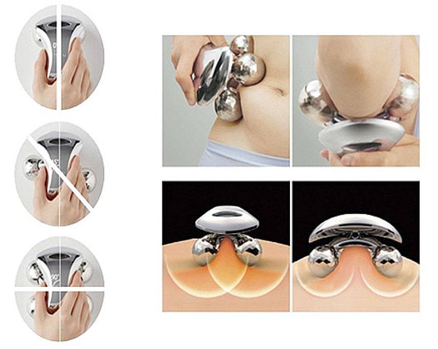 Этот компактный прибор легко помещается в сумочку. Он обеспечивает эффективный массаж лица и тела, способствующий оздоровлению и омоложению кожи и подкожных тканей. Пользоваться массажером достаточно просто, есть два способа. Первый - с захватом кожи, когда она попадает между сферами и второй - растирание линий для легкого эффекта лифтинга. Второй способ менее травматичен, но и менее действенен. Массажер оснащен четырьмя лимфодренажными сферами, которые расположены под углом 75 градусов и гарантируют самый эффективный массаж лица, шеи, талии и других частей тела, нуждающихся в лифтинге.