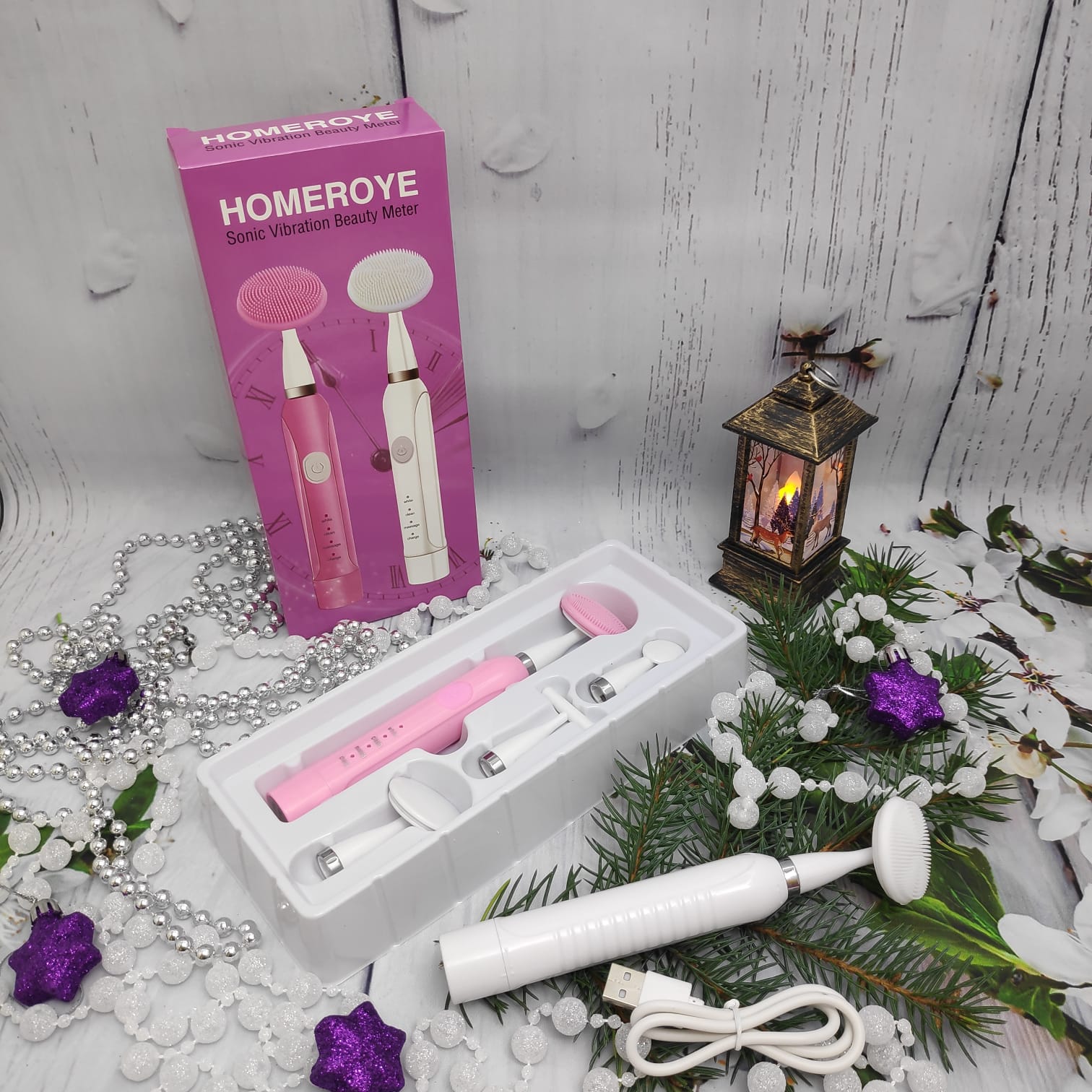 Ультразвуковой массажер-очиститель лица HOMEROYE комплектуется насадками: