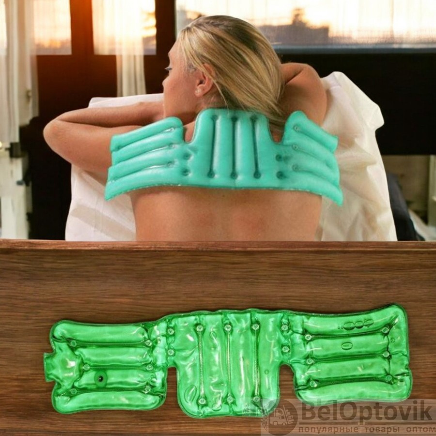 - Применяется для лечения остеохондроза (прогрев шейных позвонков с трех сторон, весь позвоночный столб), радикулита (поперек на поясницу), артрита суставов (благодаря вырезам грелка собирается, обворачивая сустав со всех сторон).