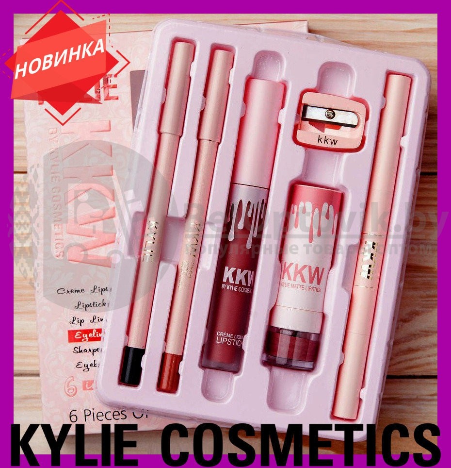 - Каждый набор KYLIE KKW 6в1 содержит черный карандаш для глаз и карандаш для губ в тон помадам.