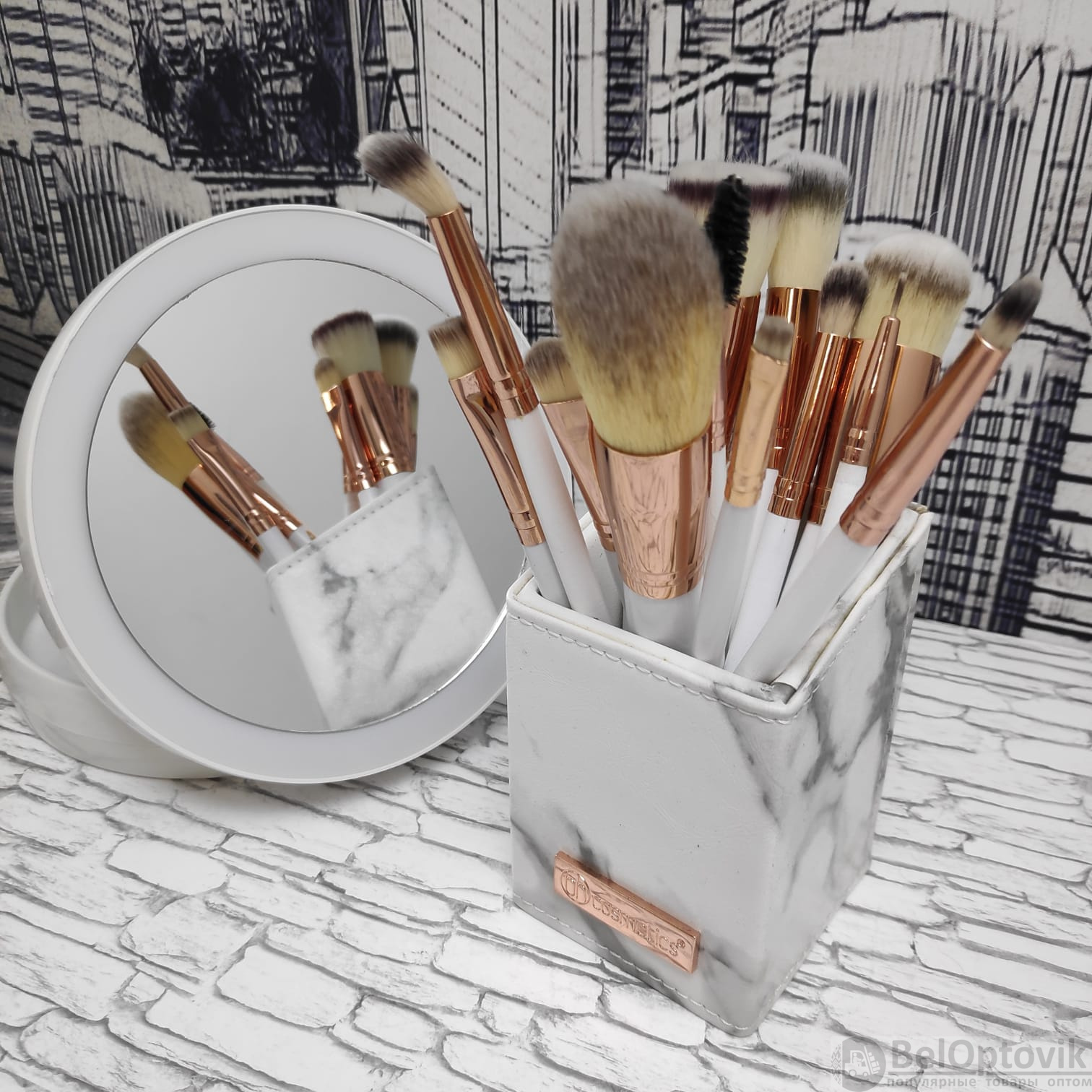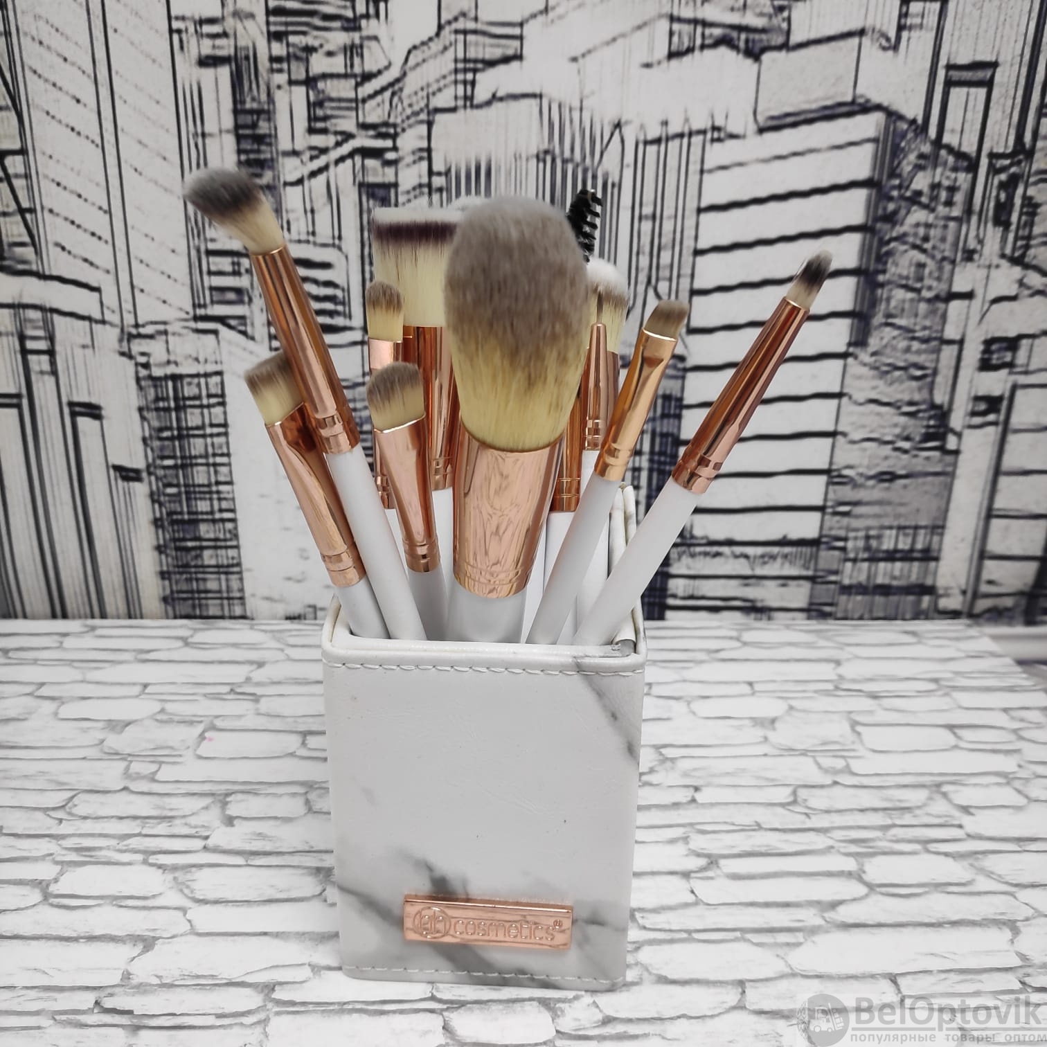Набор кистей Premium класса с подставкой BH Signature Rose Gold – 13 кистей Piece Brush Set Нежный мраморно - белый с золотом