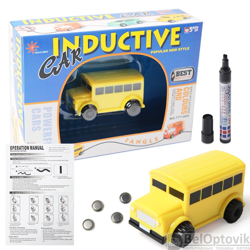 Индукционный автомобиль (волшебный фломастер). INDUCTIVE CAR Желтый автобус