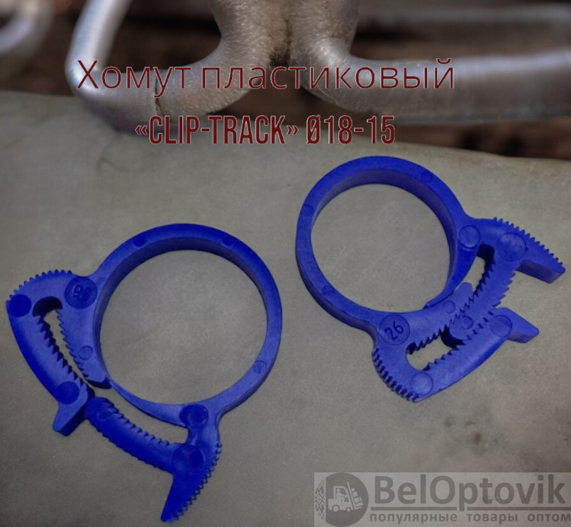 Хомут силовой пластиковый для соединения элементов круглой формы «Клип-Трек» («Clip-Track») Ø18-15, синий