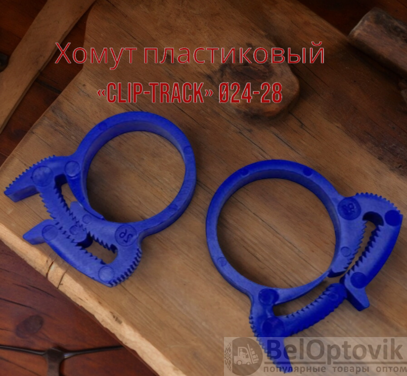 Хомут силовой пластиковый для соединения элементов круглой формы «Клип-Трек» («Clip-Track») Ø24-28, синий