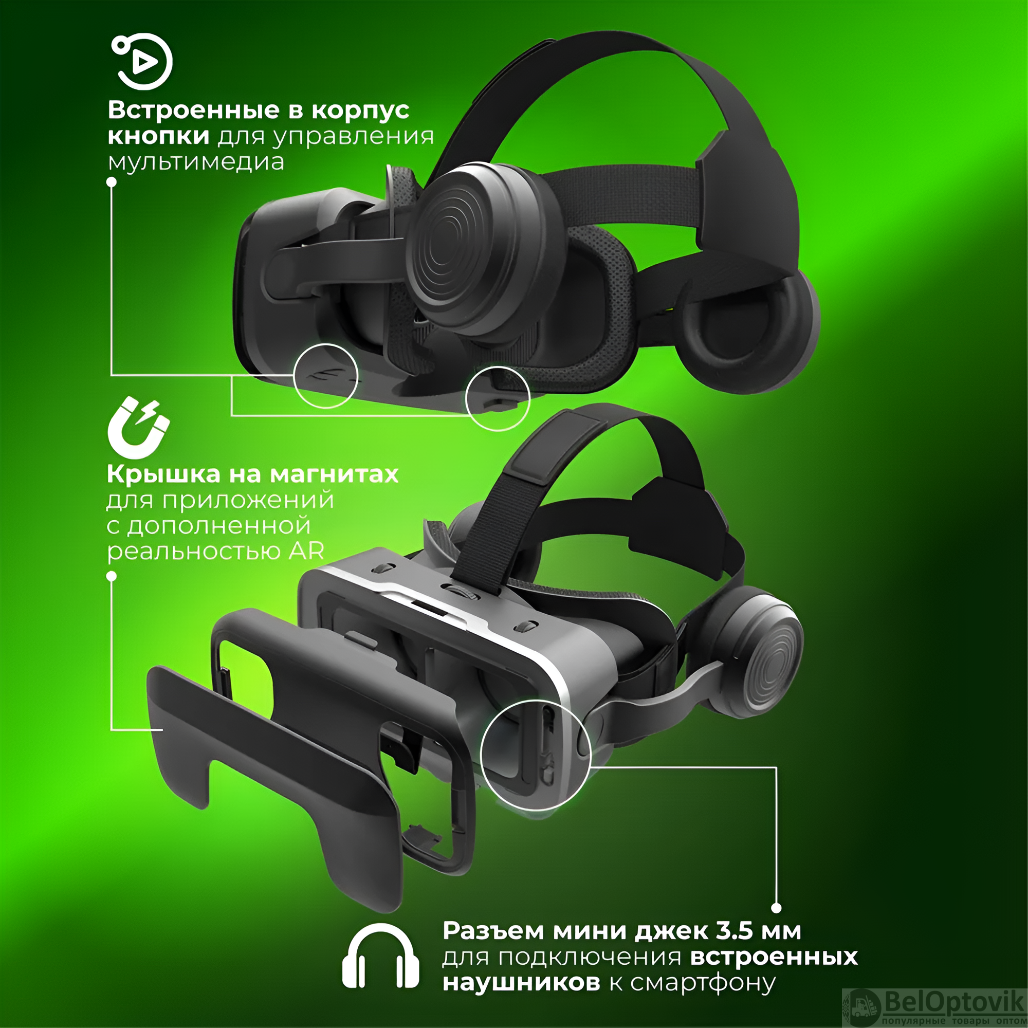 Почему купить Очки виртуальной реальности VMR600E Universe с проводными наушниками, 4.0-7.0″, Android, iOS, черные / Регулируемые ремни оптом выгодно у нас: