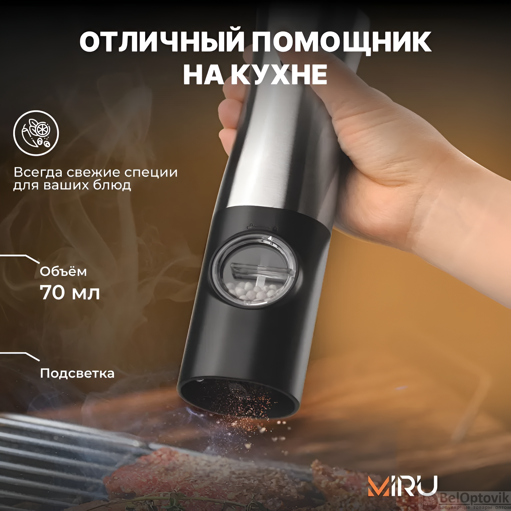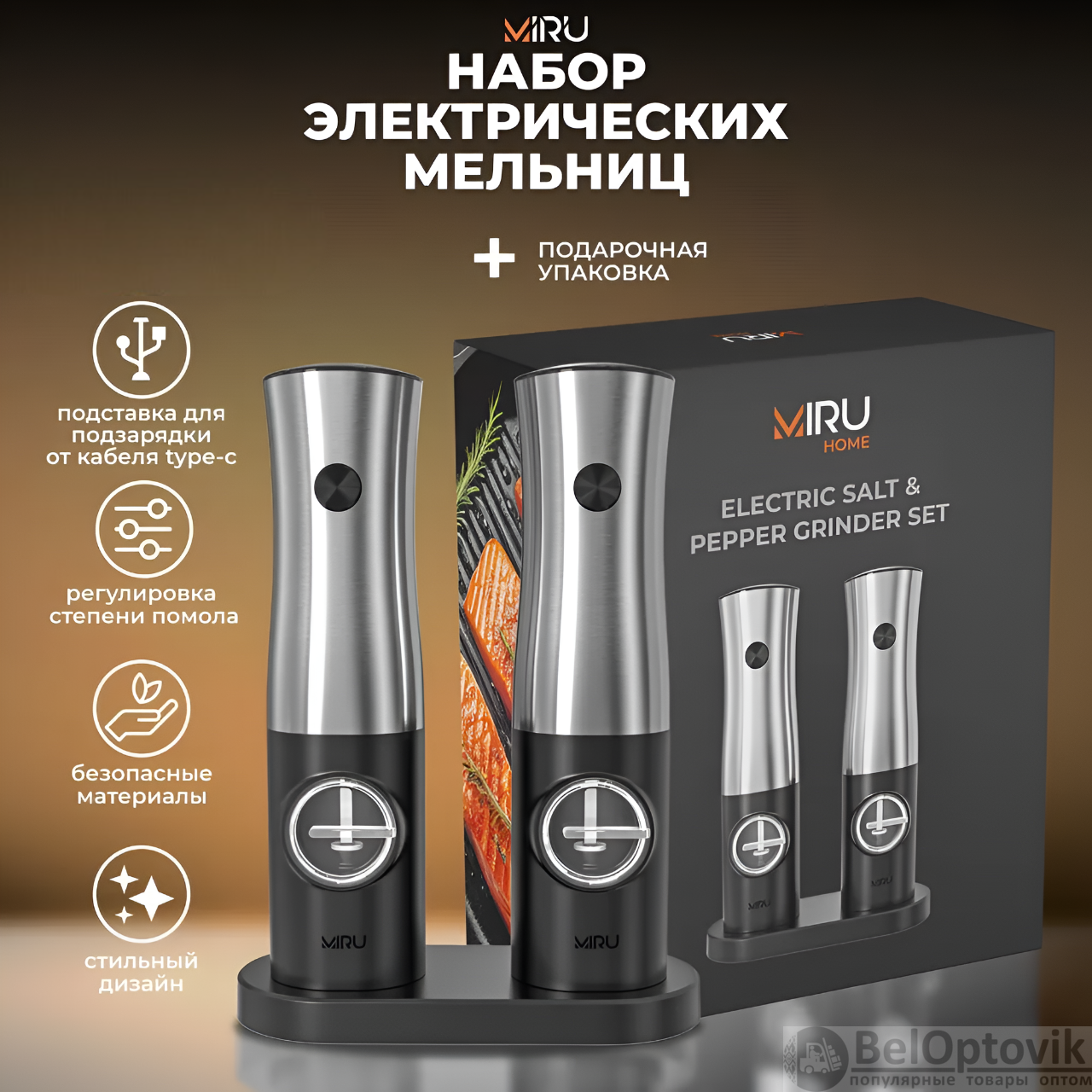 Почему купить Набор электрических мельниц для специй KA051 с подсветкой, 5 степеней помола, черная оптом выгодно у нас: