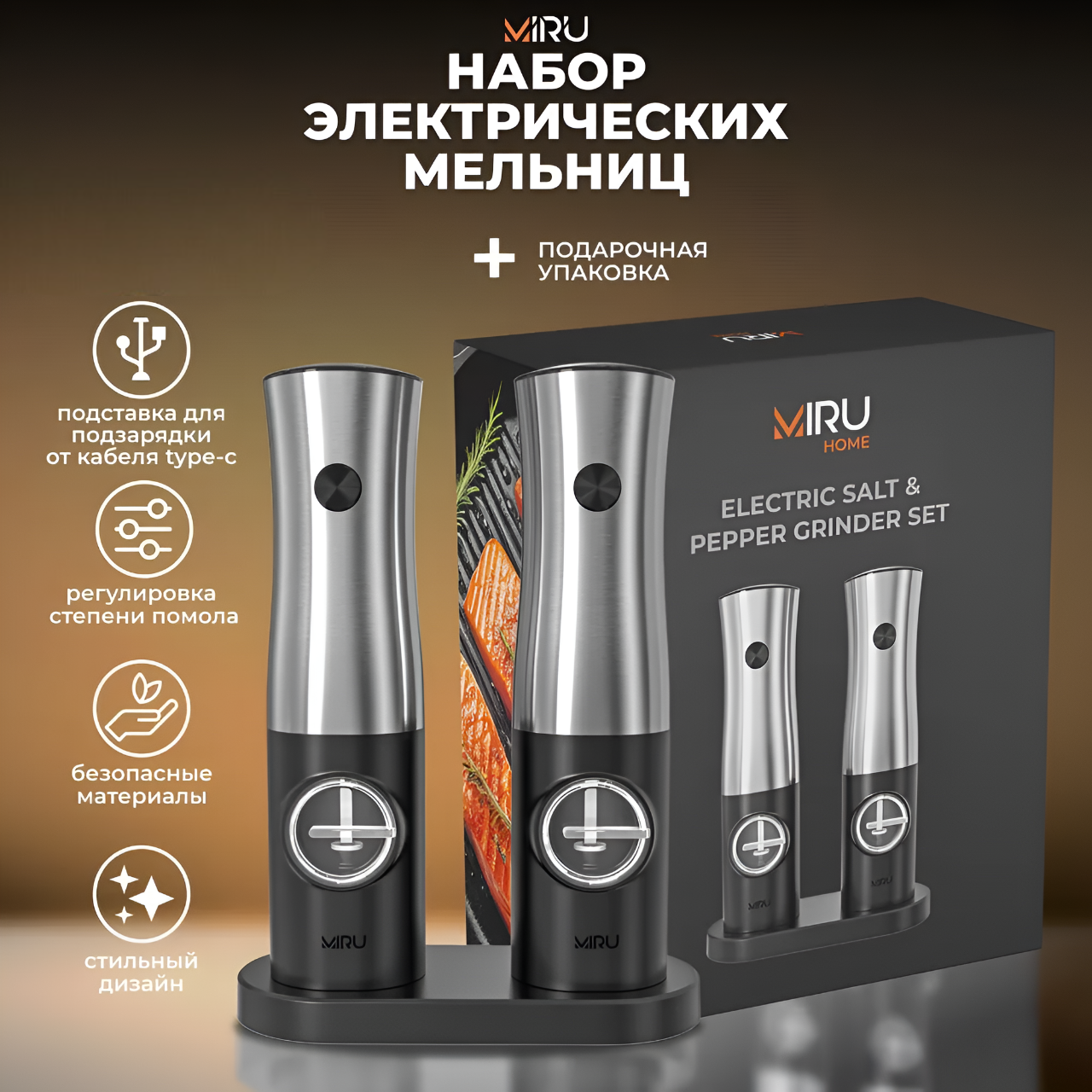 Мельницы изготовлены из пищевых материалов, что гарантирует отсутствие влияния на вкус специй. Мощность устройства составляет 25 Вт, а напряжение питания – 3.7 В. Быстрая зарядка на подставке с помощью Type-C кабеля обеспечивает удобство и экономию времени. Удобная подставка для хранения и подзарядки позволяет держать мельницы в порядке и всегда под рукой.