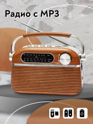 Радиоприемник аналоговый трехдиапазонный FM, AM, SW, коричневый / Питание от аккумулятора, сети, батареек, поддержка USB, microSD, microSDHC