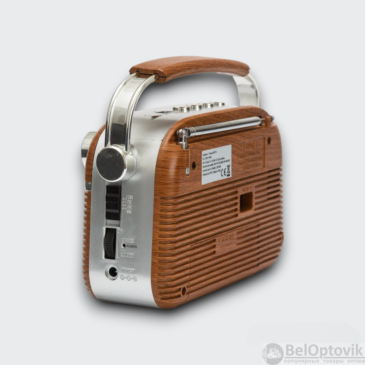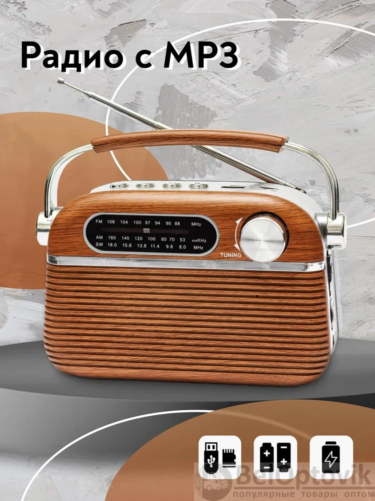 Почему купить Радиоприемник аналоговый трехдиапазонный FM, AM, SW, коричневый / Питание от аккумулятора, сети, батареек, поддержка USB, microSD, microSDHC оптом выгодно у нас: