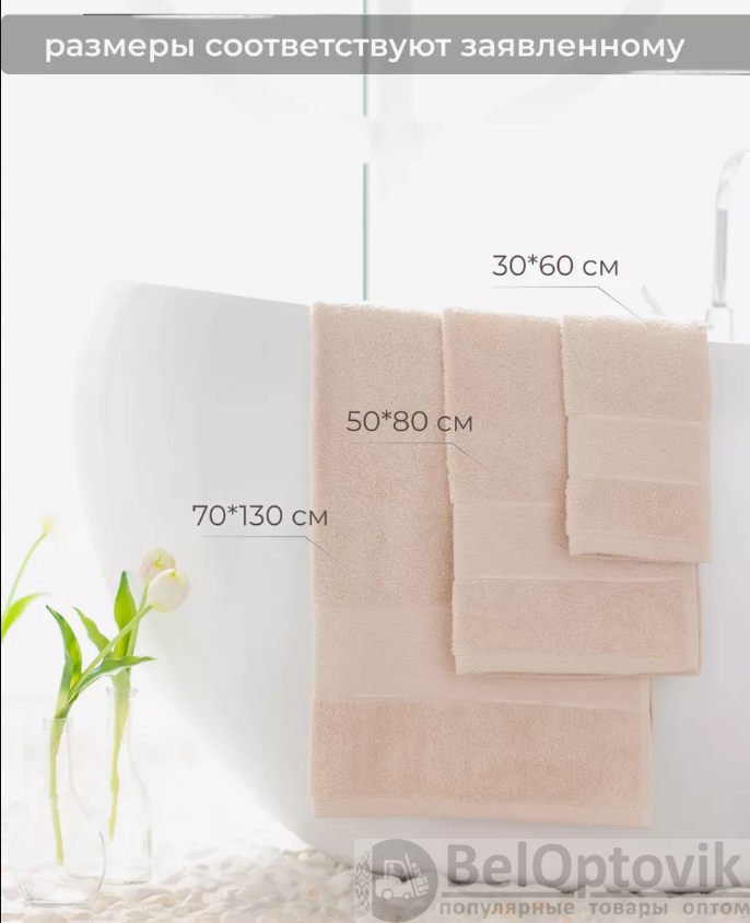Размеры полотенец: 30х60см., 50х80см., 70х130см.;