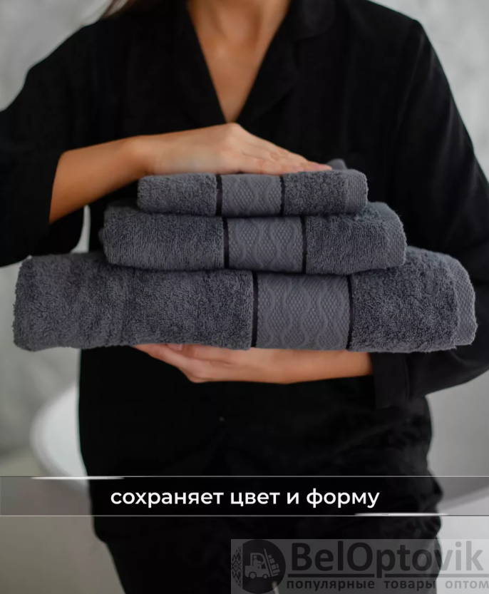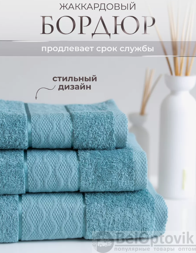 Набор полотенец состоит из 3 предметов размером 30х60см., 50х80см. и 70х130 (близкий к 70х140)см.. Полотенца изготовлены из 100% хлопка, плотность 420 гр/м2, высота ворса 4 мм., что делает их мягкими, впитывающими и быстросохнущими. Махровые полотенца имеют высокую плотность, а для их производства используется качественная пряжа- жаккардовый Бордюр, которая придает им мягкость, поэтому прослужит долго, без потери товарного вида. Пряжа придает полотенцу благородный дорогой вид. Благодаря натуральному составу, наши комплекты из махры гарантируют комфорт и уют вашему телу, ведь они сотканы из 100% хлопка, без каких-либо синтетических добавок. По краю изделия идет плетеное теснение, которое только украсит Ваш интерьер и придаст элегантности и достоинства. Они универсальные и экологичные, подходят для лица, тела и рук. Комплект лицевых и банного хлопкового полотенца станет любимым аксессуаром вашей семьи. Вы можете использовать его для вашей бани, ванной комнаты или душа.