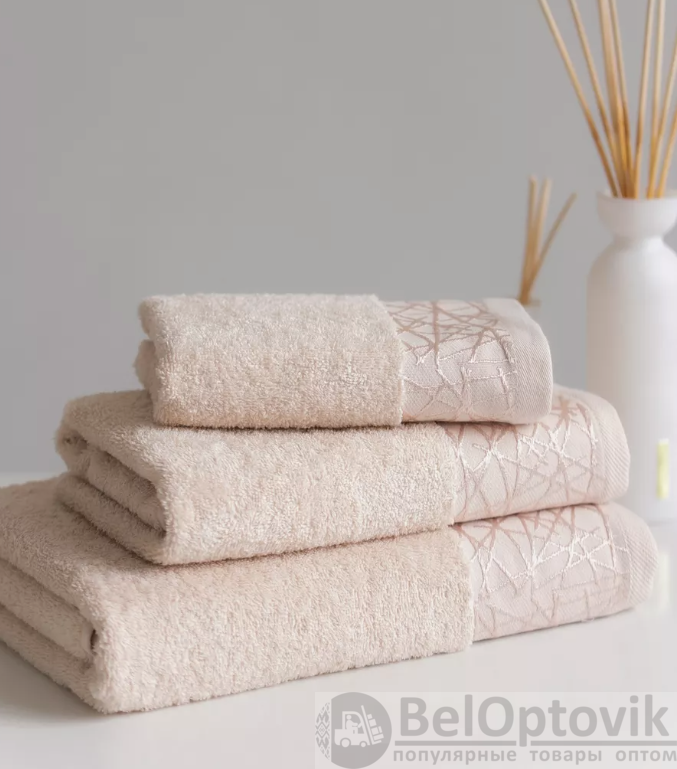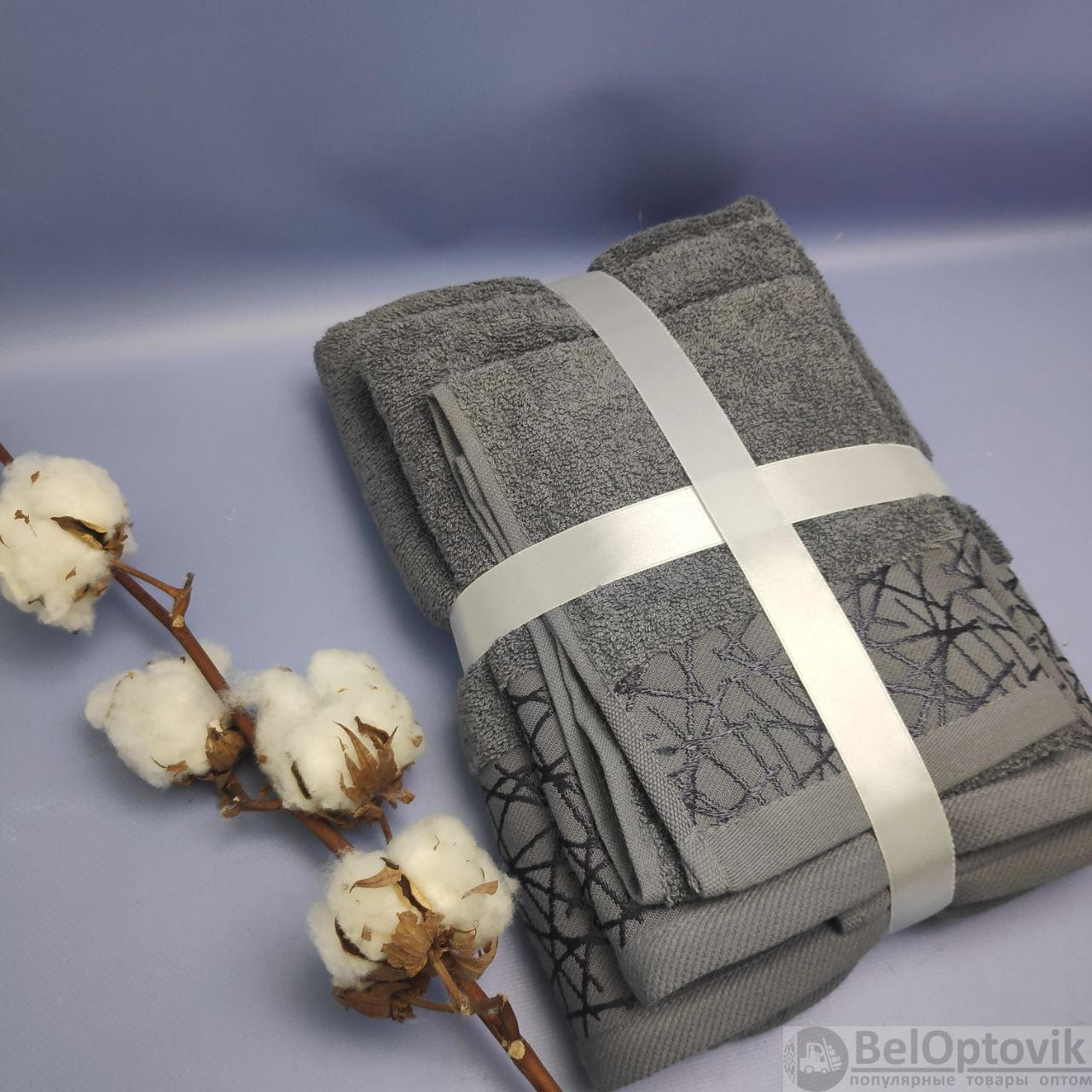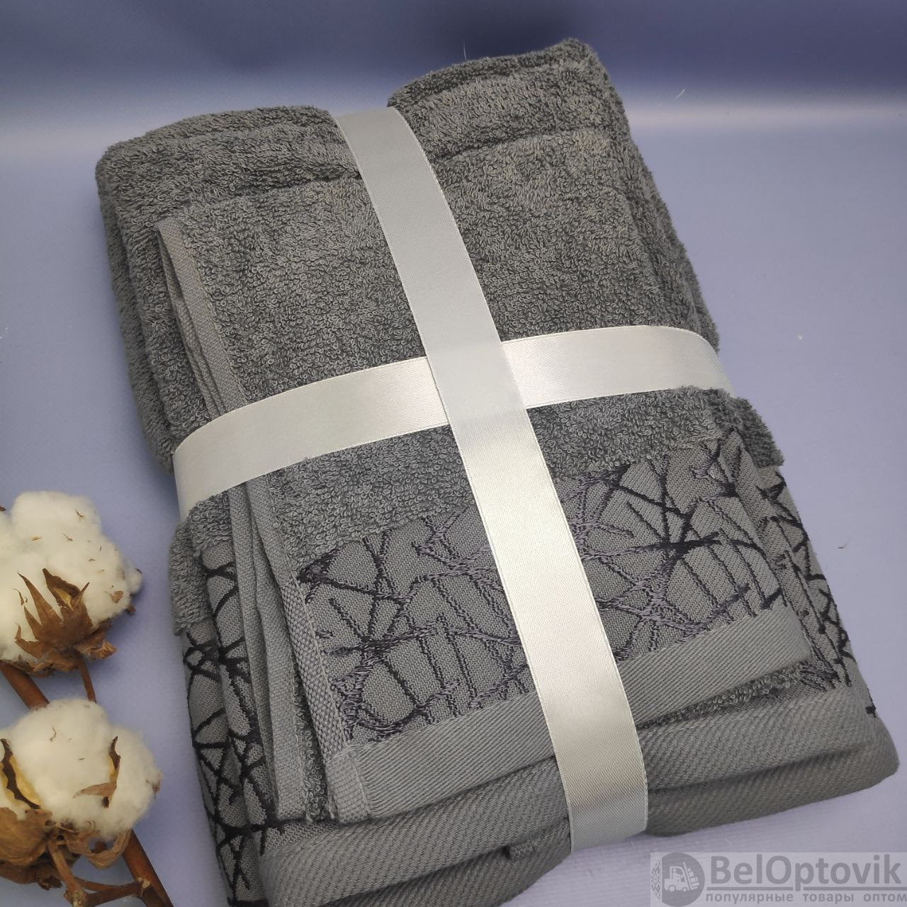 Набор полотенец состоит из 3 предметов размером 30х60см., 50х80см. и 70х130 (близкий к 70х140)см.. Полотенца изготовлены из 100% хлопка, плотность 420 гр/м2, высота ворса 4 мм., что делает их мягкими, впитывающими и быстросохнущими. Махровые полотенца имеют высокую плотность, а для их производства используется качественная пряжа- жаккардовый Бордюр, которая придает им мягкость, поэтому прослужит долго, без потери товарного вида. Пряжа придает полотенцу благородный дорогой вид. Благодаря натуральному составу, наши комплекты из махры гарантируют комфорт и уют вашему телу, ведь они сотканы из 100% хлопка, без каких-либо синтетических добавок. По краю изделия идет плетеное теснение, которое только украсит Ваш интерьер и придаст элегантности и достоинства. Они универсальные и экологичные, подходят для лица, тела и рук. Комплект лицевых и банного хлопкового полотенца станет любимым аксессуаром вашей семьи. Вы можете использовать его для вашей бани, ванной комнаты или душа.