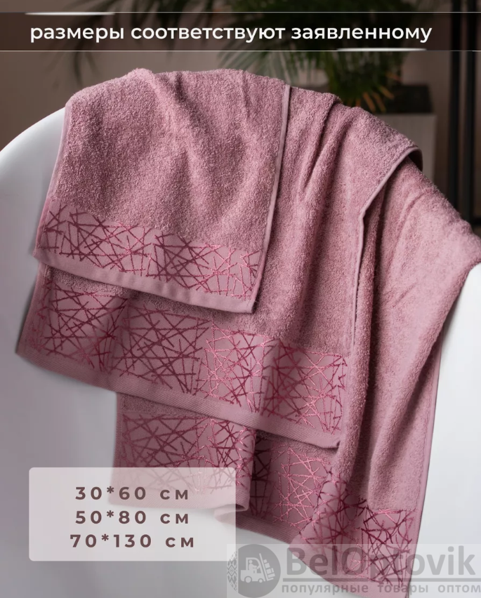 Размеры полотенец: 30х60см., 50х80см., 70х130см.;