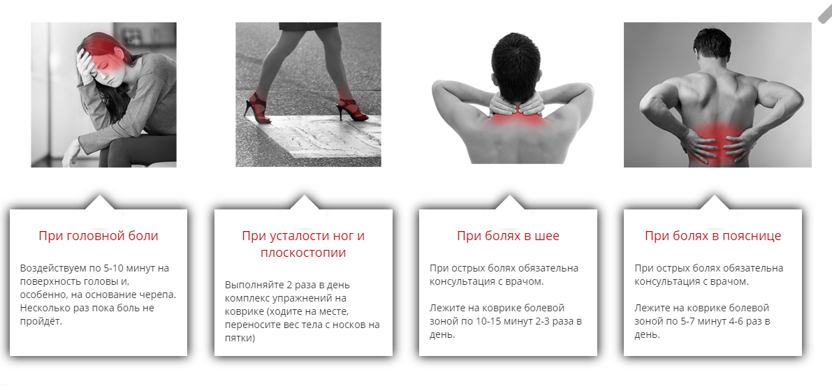 Таким образом, при регулярном использовании этот массажный коврик поможет улучшить своё самочувствие и стать энергичнее.