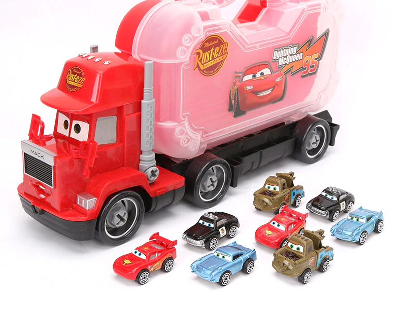 Купить Грузовик - трейлер Lightning McQueen 95 (Молния Маккуин 95) + 8 машинок в парковке - чемоданчике + запасной ремкоплект на нашем сайте можно ОПТОМ от 20 шт. или не менее 5, если Вы покупаете у нас и другие товары (сборный заказ).