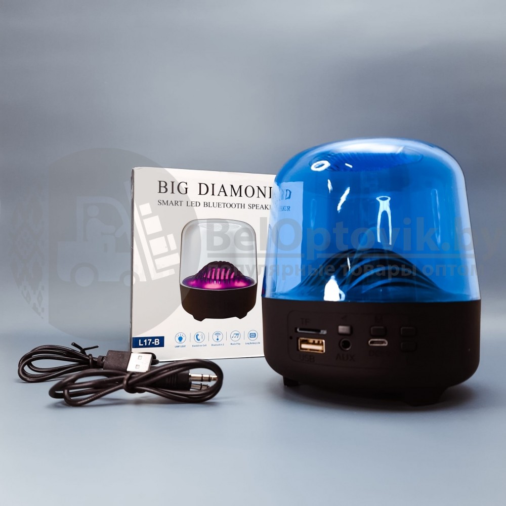 Беспроводная портативная акустическая система Big Diamond L17B Колонка Big Diamond - это новое поколение беспроводных портативных акустических систем 2021 года! Потрясающий звук! Долгая работа от аккумулятора. Умная подсветка. Возможность отвечать на звонки. Колонка выполнена из высококачественных материалов. Очень компактная, поместится в сумке или рюкзаке, а благодаря красивому лаконичному дизайну и красочной подсветке украсит любой интерьер. Лучший вариант для дома и отдыха на природе.