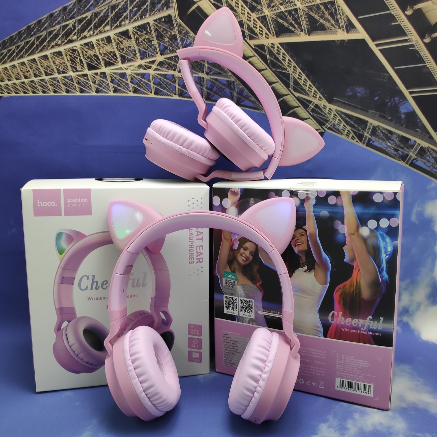 HOCO W27 CAT EAR - это не только стильные наушники со светящимися ушками, но и наушники со встроенными высококачественными динамики с потрясающим чистым стереозвуком. Имея легкую накладную конструкцию, они удобные в использовании и не вызывают дискомфорта. Изготовлены с качественных материалов, что делает их надежными в эксплуатации. Подключение осуществляется посредством технологии Bluetooth, также возможно прослушивание музыки через аудио кабель. Присутствует поддержка карты TF (можно слушать любимые треки прямо с карты памяти). Встроенный аккумулятор ёмкостью 300 mA/h, позволяет пользователю наслаждаться прослушиванием любимой музыки на протяжении 5 часов автономной работы (при средних параметрах громкости). Шелковистая, бархатная текстура наушников, приятная на ощупь, заслуженно привлечет ваше внимание.