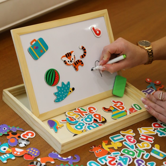 Что такое чудо-чемоданчик "Доска знаний" магнитно-грифельная доска, фигурки на магнитах 125 шт. (алфавит мелки, губка, фломастер)