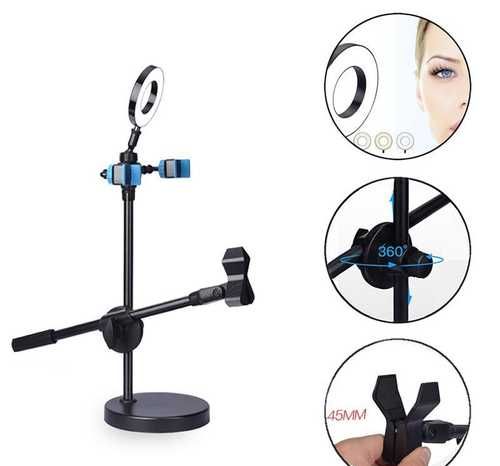 Кольцевой светильник 4в1 с держателями для двух телефонов и микрофона/Комплект для интернет-вещания STAND NEW 1 шт.;