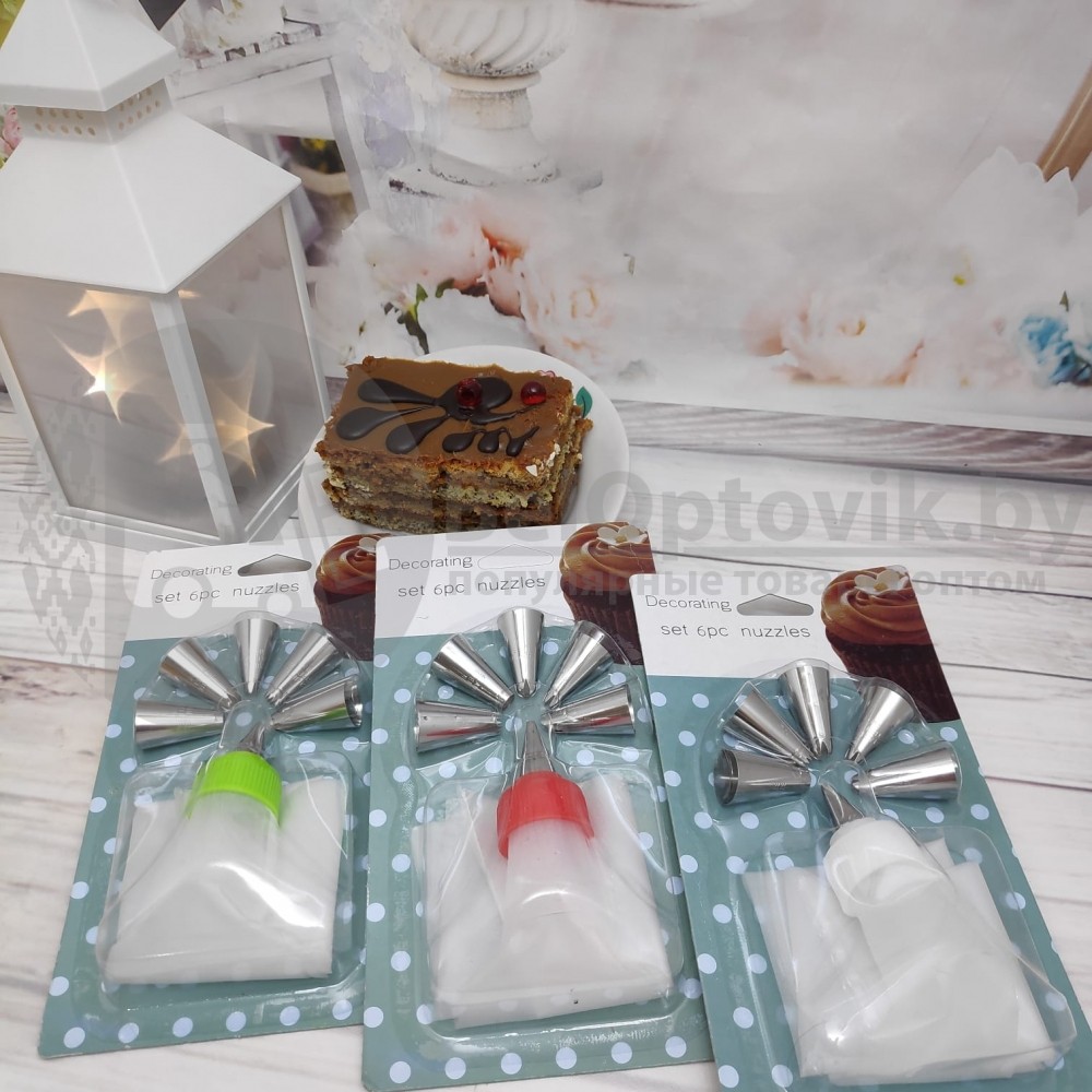 Купить кондитерский мешок Decorating set 6hc nuzzles, 6 самых популярных насадок на нашем сайте можно ОПТОМ от 20 шт. или меньше, если Вы покупаете у нас и другие товары.